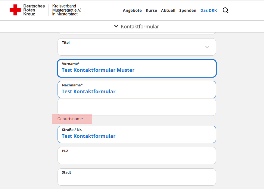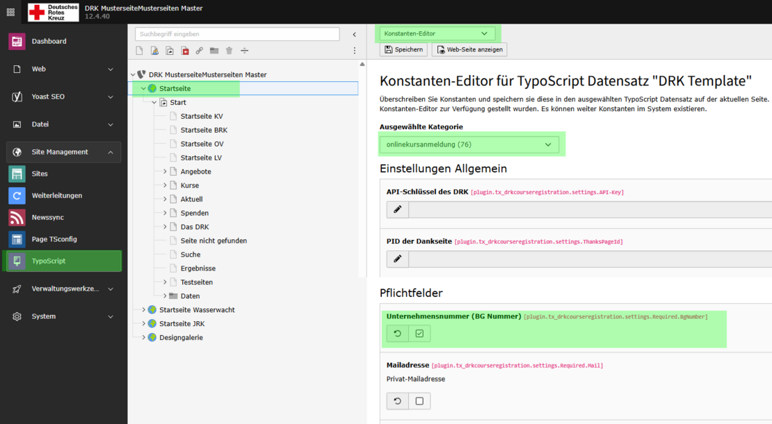 Korrektur des Pflichtfelds „Unternehmensnummer“ im Kursanmeldeformular